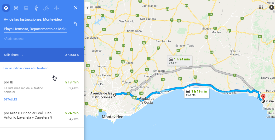 Una turista llega de visita a nuestro país, se encuentra en Montevideo y quiere trasladarse a diferentes zonas que le recomendaron.